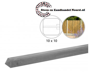 Betonpaal glad met diamantkop 10 x 10 x 280 cm, grijs ongecoat, eindpaal.