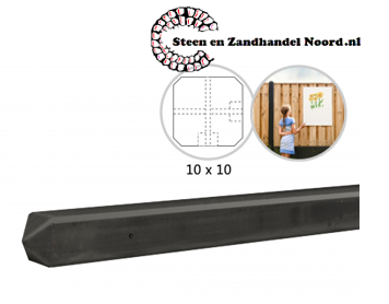 Betonpaal met diamantkop t.b.v. betonplaten met motief 10 x 10 x 275 cm, antraciet zonder coating hoekpaal.
