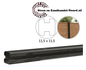 Betonpaal met sleuf en platte kop t.b.v. schutting 11,5 x 11,5 x 277 cm, antraciet tussenpaal, gecoat.