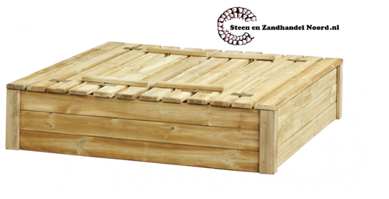 Met deksel/zitbank. Houtdikte 20 mm. Onze zandbakken voldoen aan de CE-norm.