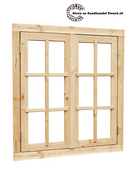 Vuren dubbel uitzetraam met dubbelglas, 112 x 120,5 cm