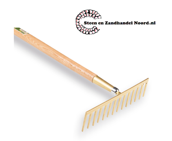 Tuinhark ATLAS met 14 geharde rechte tanden. Meest verkocht model. Gehard stalen hark compleet met gelakte Essen steel 170 x 2,9 cm. Deze hark met rechte tanden is ideaal voor in de tuin, het maken van een zaaibed, het egaliseren/onkruid vrij houden van grindpaden, het fijn maken en egaliseren van grond en wordt veel gebruikt in het infra werk en door hoveniers. De stevige lange gelakte steel voelt prettig aan en is i.c.m. met vloeibaar asfalt goed te reinigen. Ook leverbaar in 8, 10, 12 en 16 tands uitvoering. Merk Atlas, OFFNER.