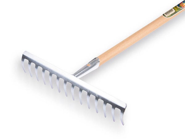 Tuinhark met 14 gebogen tanden. Verzinkte uitvoering met IKAPƒ steel 150 x 2,8 cm, FSC 100%.