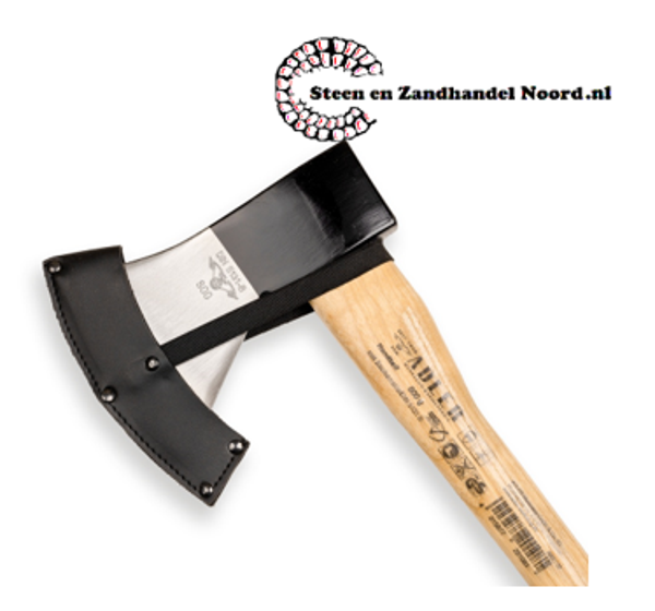 Handbijl of keukenbijl ADLER met een kopgewicht van 800 gram, voorzien van een Essenhouten steel in lengte 38 cm. Wordt geleverd met een stevige lederen beschermhoes, die dankzij een elastische band eenvoudig over de bijlkop geplaatst kan worden. Geschikt voor licht hak- en kliefwerk. De Adler handbijl van 800 gram, is de meest gebruikte uitvoering.