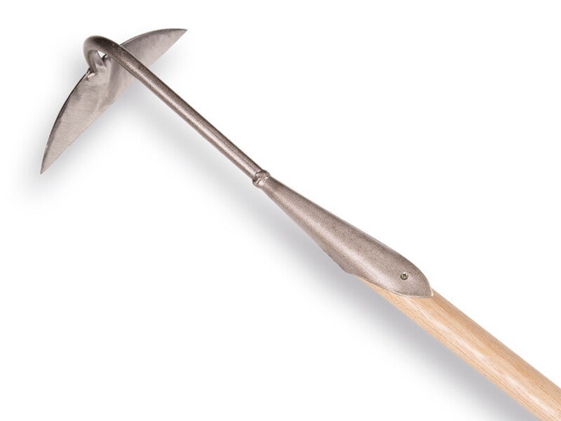 Gesmede bietenhak 18 cm., BLANK met steel 170 x 3,0 cm. De steel is voorzien van een waxlaag wat blaarvorming in uw handen voorkomt. Doordat de hak gemaakt is van gesmeed staal, zal deze minder snel gaan roesten en heeft een langere levensduur. Het gesmede blad van de bietenhak is vlijmscherp waardoor men, ook in zware kleigrond, met gemak door alle soorten onkruid snijdt en de bodemstructuur verbetert.