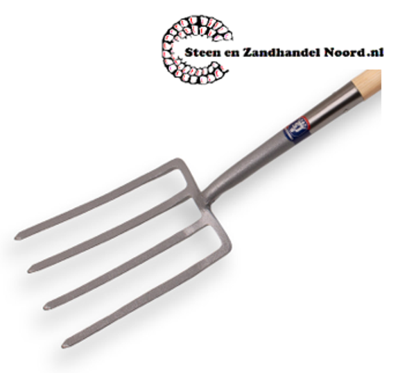Spitvork met 4 tanden, lengte 26cm. Merk SPEAR & JACKSON. Type 1650 TQ met lange hals, met Essen YD-steel. Spitten met een spitvork heeft twee voordelen t.o.v. een spade. Eerste voordeel is dat bij het verpoten van een plant of struik de wortels worden gespaart en niet worden afgestoken. Tweede voordeel is dat grond, veen of klei minder snel aan het blad kleeft. Spitvorken zijn in vele varianten leverbaar en worden ook gebruikt voor het rooien van aardappels of ander pootgoed en het omzetten van compost. Geschikt voor LICHTE spitwerkzaamheden.