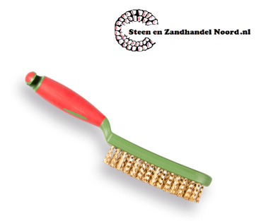 Hand staalborstel met gehard, gegolfd staaldraad en een stevig handvat met ophanggleuf. Kleur rood-groen.