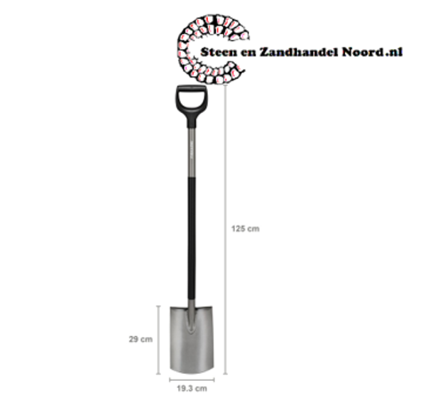 Tuinspade FISKARS Ergonomic, rond model voorzien van een ergonomische steel met D-greep. Totale lengte 125 cm.