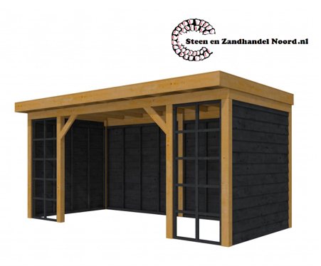 - 4 enkelzijdige Zweeds rabat wanden (zelf op maat zagen), zwart geïmpregneerd.