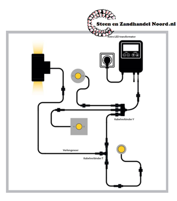 Tip: de bekabeling van 24 volt verlichting kun je onder een laagje zand wegwerken en hoeft dus niet 60 cm onder de grond te worden gelegd.