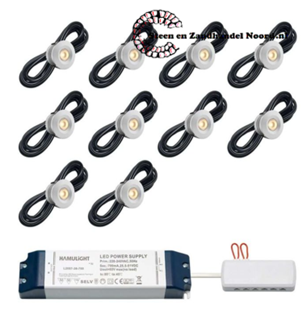 Deze BAS set met Cree LED inbouwspots uit de Sevilla serie is geschikt voor in aluminium en houten veranda’s. Deze stijlvolle set is verkrijgbaar in sets van 4, 6, 8, 10 of 12 dimbare LED inbouwspots (3 watt), inclusief bijbehorende serie LED transformator met connector.