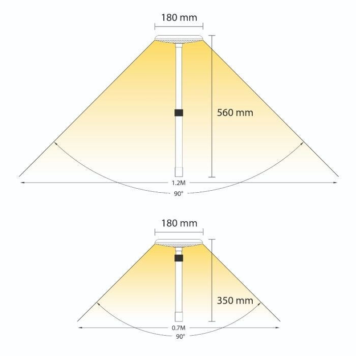 | Lichthoek | 90 graden |