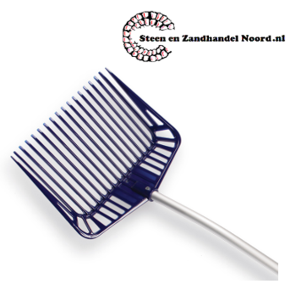 Allesruimer blauw Atlas, 18 tands, 33 cm breed blad gemonteerd met aluminium steel en D-greep. Alles betekent in deze context: alles met veel volume en licht van gewicht. Deze lichtgewicht allesruimer heeft een speciaal kunststof blad (vervangbaar art.nr. 827032) schept en harkt gemakkelijk blad onder de heg vandaan en schept gemakkelijk gemaaid gras van het gazon. Met de handige D-greep leegt u de allesruimer in een handomdraai in de container, kruiwagen of composthoop. Geschikt voor alle leeftijden en bijzonder in trek bij Hoveniers.