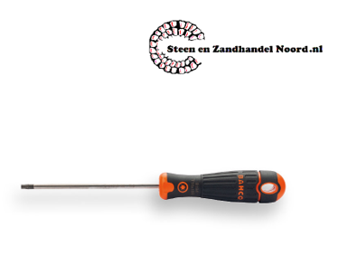 Torx schroevendraaier BAHCO T15 x 100 mm, voorzien van rubber greep en gefosfateerde punt.