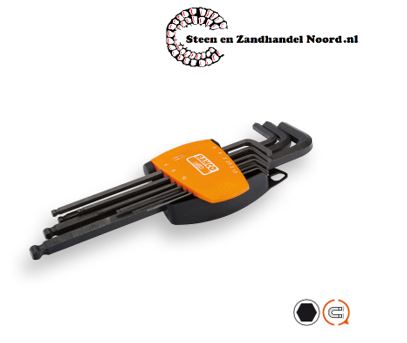 Haakse stiftsleutelset BAHCO met metrische maatvoering en zeskant kogelkop. Lange uitvoering, geleverd in kunststof houder. Deze 9-delige set bevat de maten 1.5, 2, 2.5, 3, 4, 5, 6, 8 en 10 mm. Deze sleutels worden ook wel inbussleutels of zeskantsleutels genoemd.