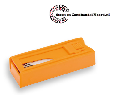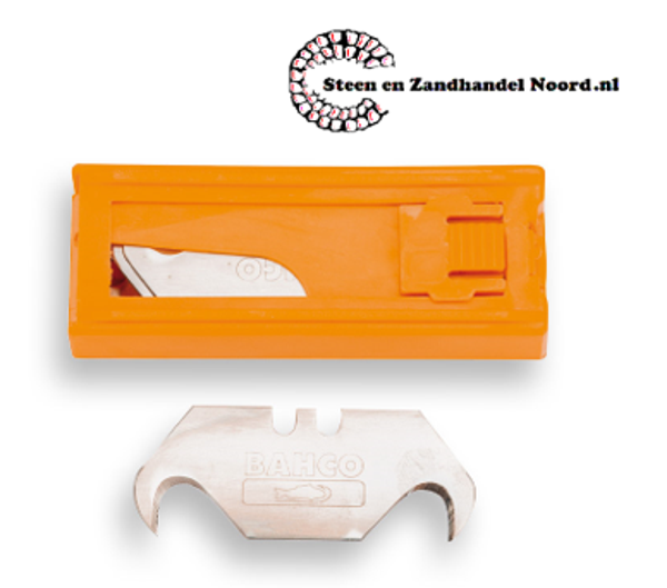 Reserve trapezemessen met haakpunt BAHCO, verpakt per 5 stuks in veilige kunststof dispenser.