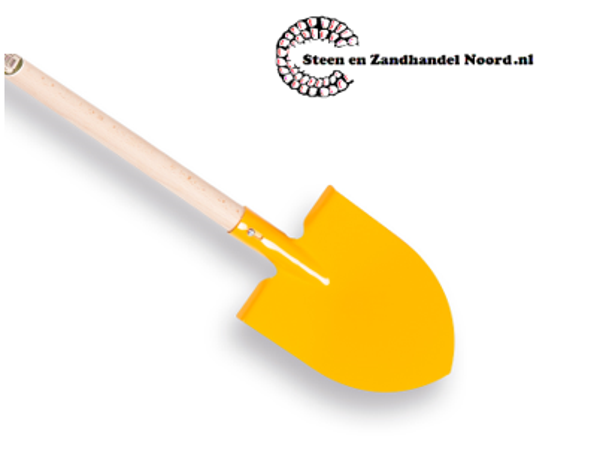 Kinderschopje spits model, gele kleur. Voorzien van een getailleerde, gewaxte steel met ophangoog.
