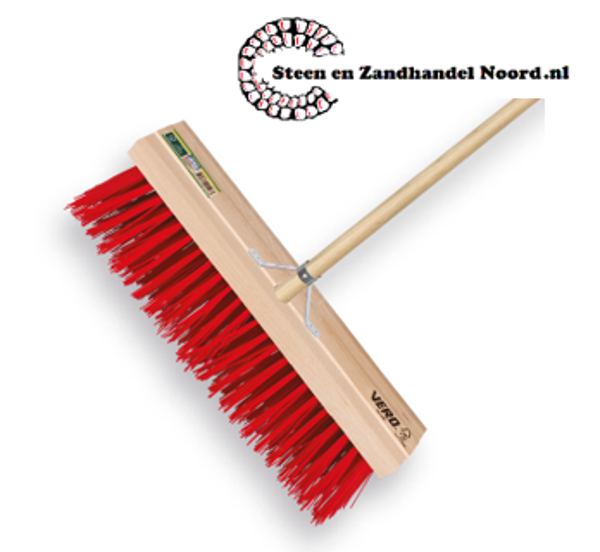 Straatbezem VERO 80 met rode PPN. Breedte 41cm. Compleet met TAUARI steel 150 x 2,8 cm. en stokhouder. (1492600) PPN is een slijtvaste synthetische vezel. De vezeldikte is 1,0 mm. PPN vezels houden vuil minder vast.