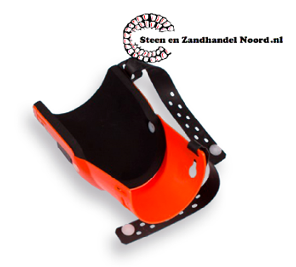Kniebeschermer NIERHAUS, type 20, met zwarte antislip kussen. Het kunststof bovenstuk scharniert ten opzichte van het onderstuk. Voorzien van textiel elastieken.