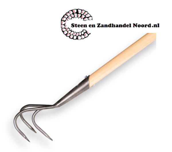 Krabber met 3 geharde tanden, compleet met essen steel 150 cm. Voor het losmaken van de grond en het verbeteren van de waterdoorlatendheid. Merk De Wit.