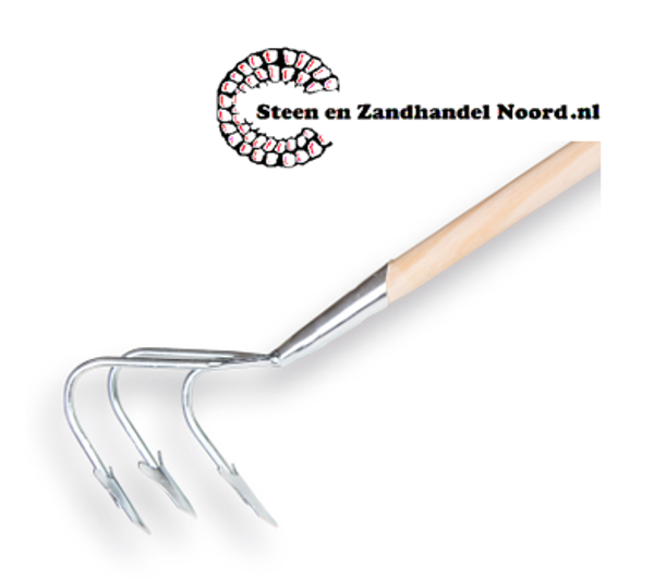 Cultivator met 3 tanden en ganzevoetjes. Verzinkt metaal met IKAPƒ steel 150 x 2,8 cm. FSC 100%. Merk ATLAS. Voor het losmaken van de grond en het verbeteren van de waterdoorlatendheid.