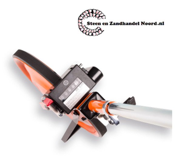 Meetwiel type Rolltacho 592000. Voorzien van een dicht wiel met een omtrek van exact 1 meter. Geijkte uitvoering met een meetbereik van 9999,99cm op de analoge meter. Bij teruguitlopen telt de meter ook terug. Merk NESTLE. Made in Germany.