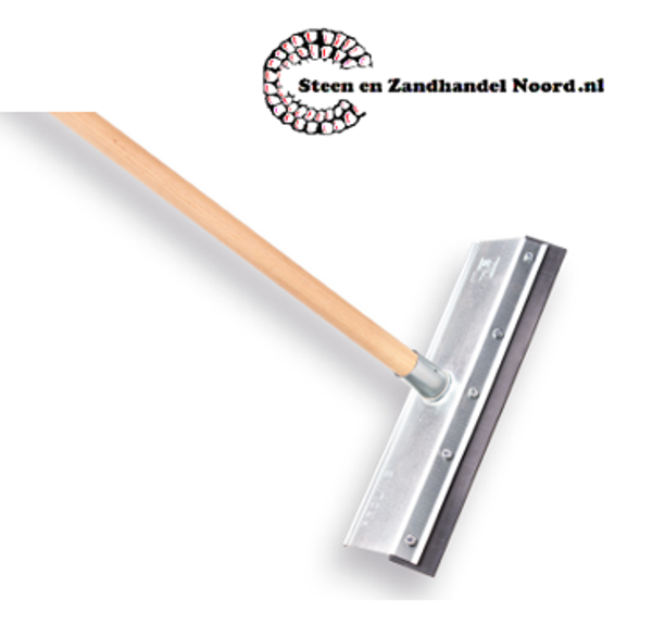Mestschuiver 40 cm. verzinkt met canvas versterkt rubber, gemonteerd met steel 160 x 3,2 cm..